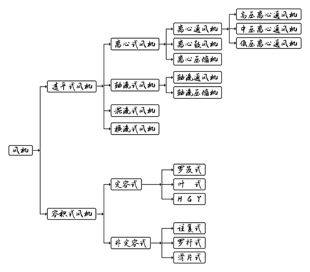 通风机的分类有很多种,可以按空气流动方式分类,也可以按压力大小分类,还可以按用途分类。